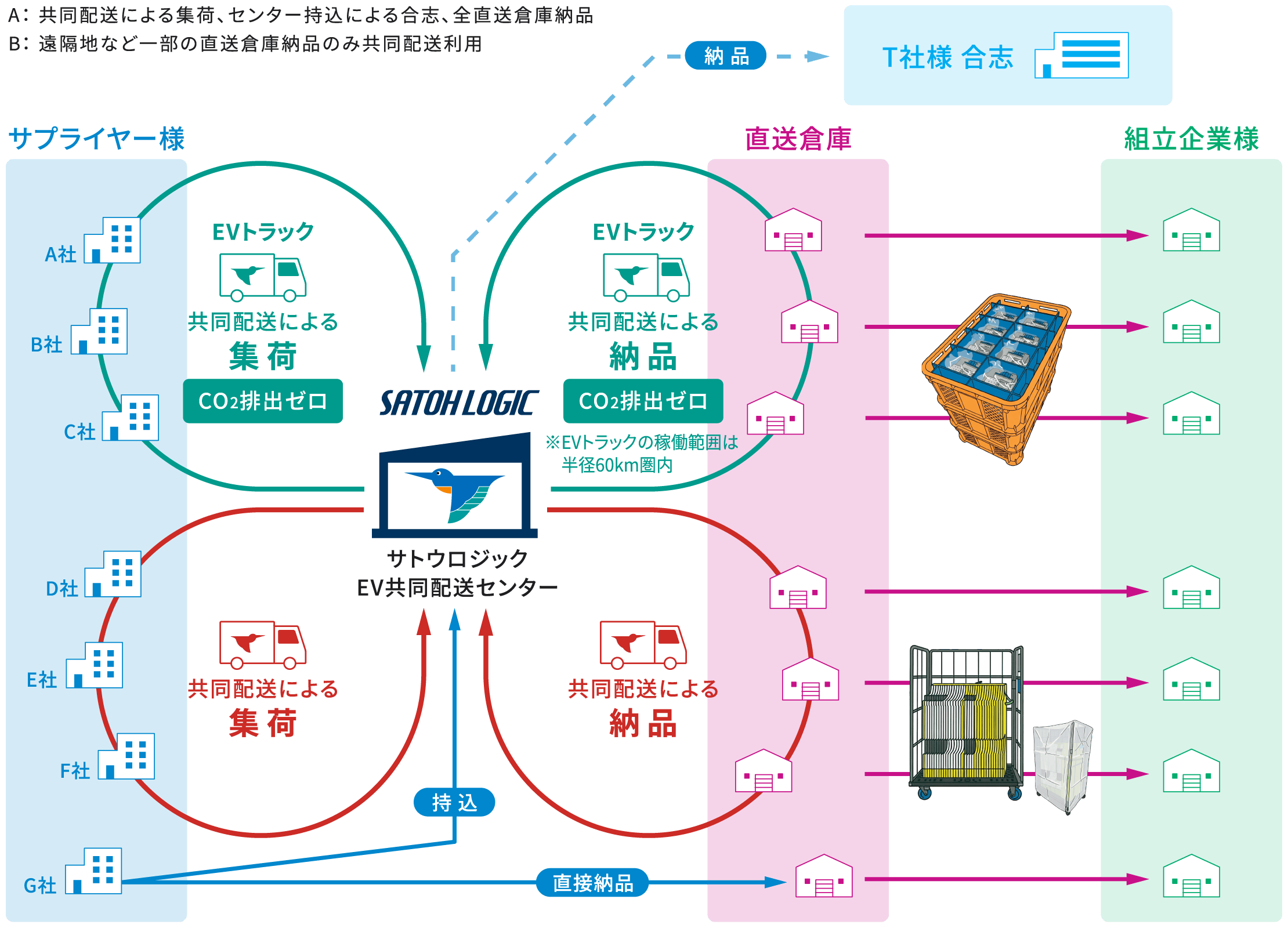 2026年にEVトラック導入とEV共同配送センターを稼働させるサトウロジックの共同配送の導入を、この機会にぜひご検討ください。