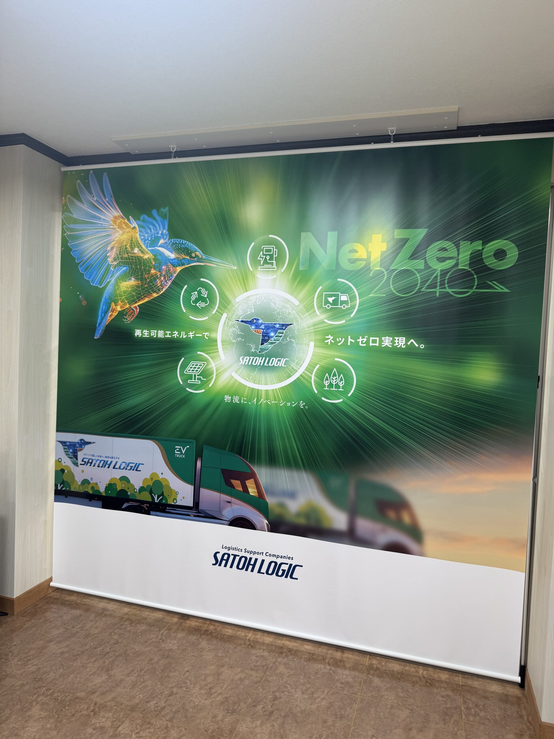 2026年に、EVトラックを導入しEV共同配送センター稼働に向けたタペストリー✨🚚
